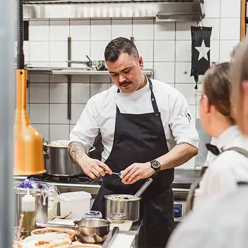 Idearikkaat huippukeittiömestarimme ja korkealuokkaiset raaka-aineet.